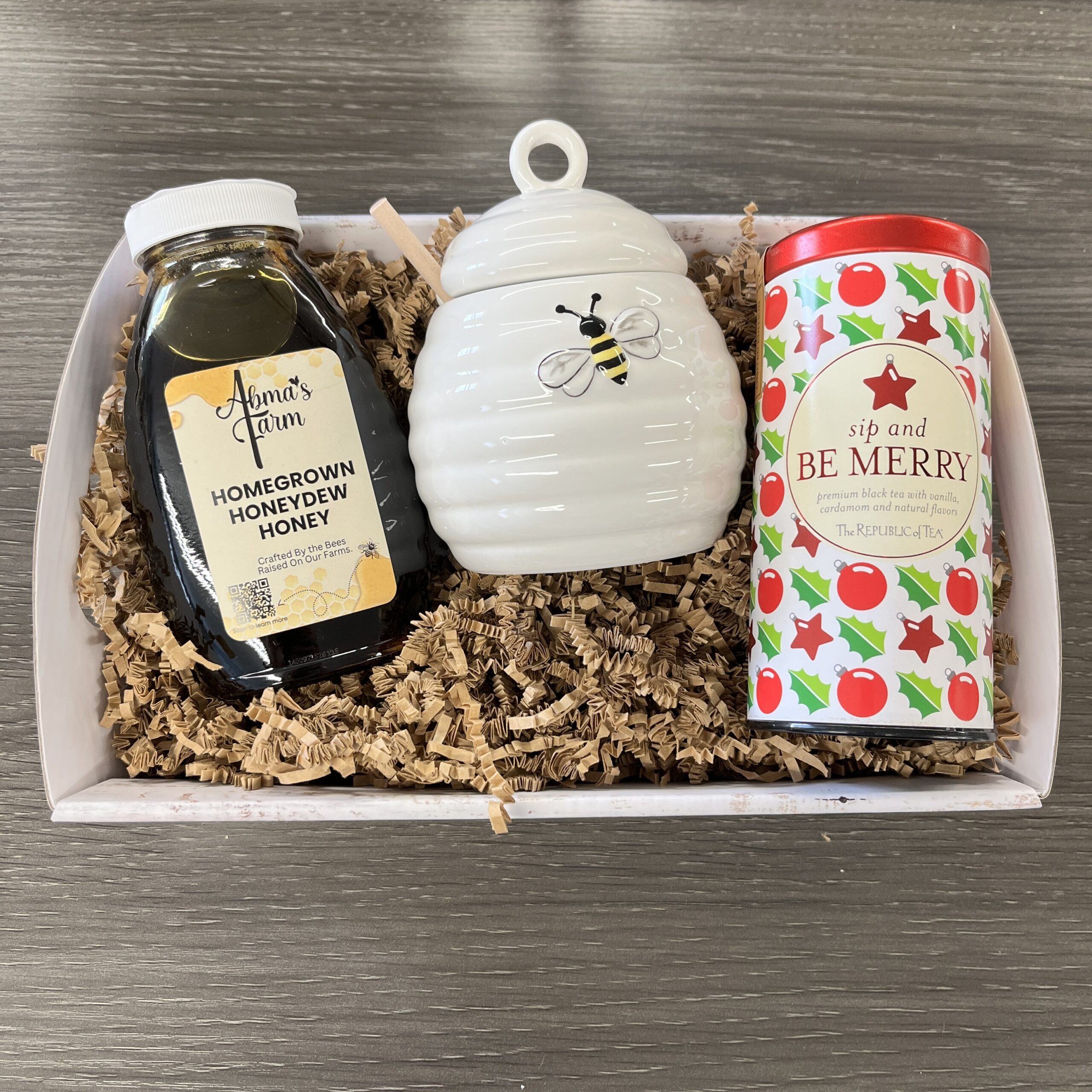 Bundle includes honey jar, seasonal teas, and 1lb. jar of Abma's Farm homegrown raw honey. Pick up in Wyckoff, NJ.